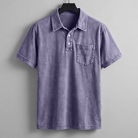 Homme Polo Chemise 100% coton délavée à l'acide Occasionnel Fête Revers Manche Courte Mode Basique Uni Vintage Affligé Été Printemps Toutes saisons Coupe régulière Noir Vert Claire Rose Claire bleu