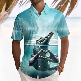 Homme Crocodile Chemise Manche Courte Drôle Été Printemps Col Rabattu Boutonner Jaune Violet Vert