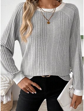 Femmes Chemisier Couleur Unie Élégant Occasionnel manche longue Col ras du cou Hauts Réguliers Quotidien Patchwork Noir Rose Claire Fuchsia Gris Printemps Automne Hiver