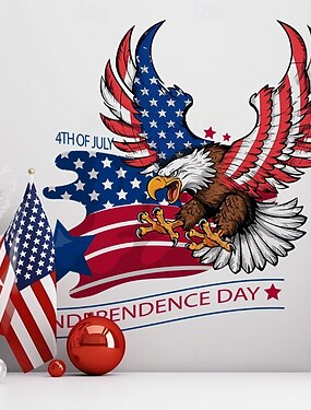 Lot de 2 stickers muraux aigle pour la fête de l'indépendance américaine, avec une ambiance festive. Stickers décoratifs autocollants.