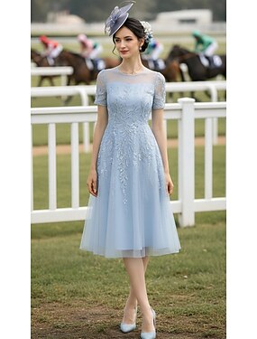Robe de bal longueur genou en A Robe de fête Robe de cocktail Robe de mère de la mariée à manches courtes encolure ras du cou élégante vintage luxueuse avec broderie