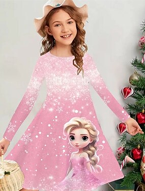FILLE 3D Graphic Bande dessinée Motif de flocon de neige Robe manche longue Eté Printemps Vacances du quotidien Princesse Magnifique Doux Enfants 4-12 ans Robe casual Robe Trapèze Mi-long Standard