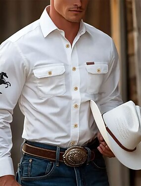 Homme Animal Cheval Chemise de travail Chemise Western Chemise Cargo manche longue Tactique Vintage Rétro Sport en Plein Air Vêtements de travail Printemps Automne Col Rabattu Deux poches avant