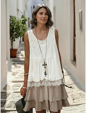 Femmes Mini Robe Robe en Dentelle Robe d'Été Robe Blanche Occasionnel Vacances Rue Fête Coupe régulière Sans manches Col ras du cou Blanche Été