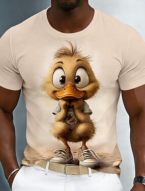 T-shirt graphique pour homme avec un adorable caneton animé en 3D portant des baskets, manches courtes, col rond, beige crème, style streetwear décontracté, tailles S, M, L, XL, XXL, XXXL