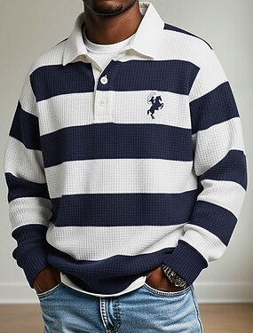 Homme Rayures horizontales Polo Polo de rugby Polos de Rugby manche longue Polos Revers Vêtements de sport Occasionnel École Athleisure Tenue quotidienne Impression 3D Printemps Automne Hiver Bleu