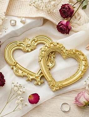 Cadre photo en résine gaufrée en forme de cœur couleur crème dorée – une décoration chaleureuse pour les photos de famille &accessoires de photographie