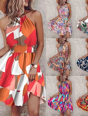 Femmes Mini robe Robe Décontractée Robe trapèze Robe à col licou Mode Moderne africain Quotidien Vacances Sortir Coupe régulière Fleuri Graphique Paisley Sans manches Col Halter Bleu Blanche Rose