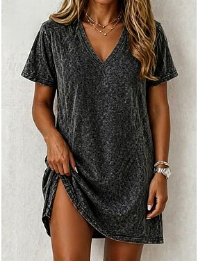 Robe mini femme Robe petite Robe T-shirt Robe tee Robe shift Robe d'été Mode Bohème Basique Extérieur Vacances Fête Coupe régulière Tropicale Manches courtes Col V Noir Blanc Jaune