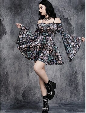Gothique Mini Robe Robe courte Sorcière Épaules Dénudées Fleuri Déguisement Femmes Fantaisie Halloween Carnaval Performance Soirée Adultes Robe