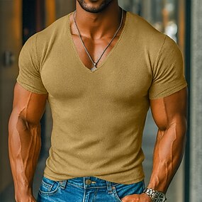 Homme T-shirt Tee-shirt Tricoté Manche Courte Col en V Été Couleur Unie Mode Designer Basique Tricoté Vacances Rue Occasionnel Bleu Ciel Jaune Beige T-shirt haut de gamme pour homme