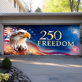 4 juillet 2026 250e Jour du Souvenir 250 Liberté Aigle Pêcheur Drapeau Américain Feux d'Artifice Bannières de Porte de Garage Décor Patriotique Extérieur Fête de l'Indépendance Célébration du 4