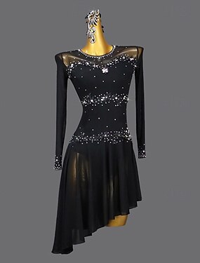 Danse Latine Robe Strass Femmes Soirée Entraînement Performance manche longue Spandex Nylon