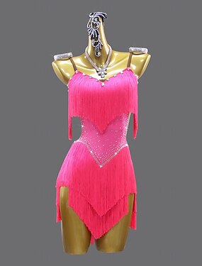 Danse Latine Robe Cristal / Strass Gland Épissage Femmes Performance Soirée Sans manches Spandex