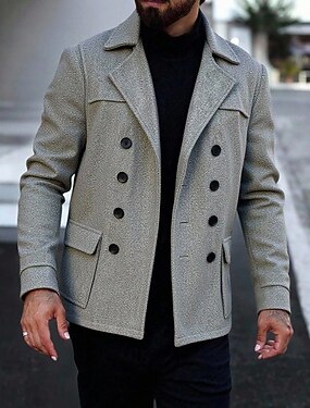Homme Caban Trench Vacances Quotidien Automne Hiver Polyester Chaud Vêtements d'extérieur Vêtement Tenue Mode Classique Uni Avec Poches Revers Double Boutonnage