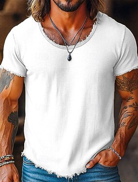 Homme T-shirt Manche Courte Manches courtes Col ras du cou Été Toutes saisons Couleur Unie ancien Mode Designer Teinture en vêtement Lavé Occasionnel Vacances Rue Noir Bleu Marron T-shirt haut de