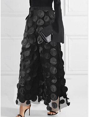 Femmes Jambe large Chinos Streetwear Occasionnel Longueur complète Taille moyenne À pois Maille Ceinture Élastique Confortable Non Elastique Quotidien Extérieur Rue Noir Été Printemps Coupe Ample