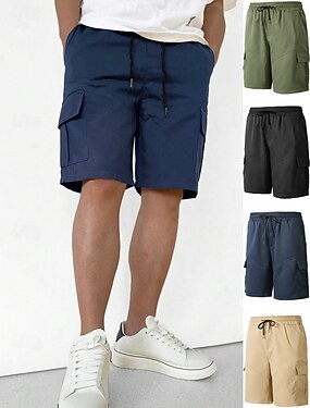 Homme Pantalon cargo Shorts cargo Shorts Short décontracté Cordon de serrage Avec Poches Taille Élastique Uni Confort Respirant Court Occasionnel Extérieur Plage Vacances Mode Bleu Noir Non Elastique
