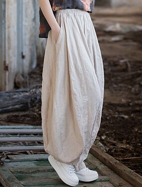 Pantalon chino en lin 70% pour femme, style bloomer, idéal pour les vacances et la ville. Modèle basique, longueur mi-longue, taille mi-haute, poche unie, ceinture élastique confortable et non élastique. Parfait pour un usage quotidien, en extérieur ou en