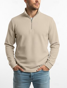 Homme Chemises Polo Gaufre Polo quart de zip Extérieur Décontracté Zip quart manche longue Mode Moderne Couleur Unie Texturé Tricoté Toutes saisons Coupe régulière Marron foncé Noir Blanche Vin bleu
