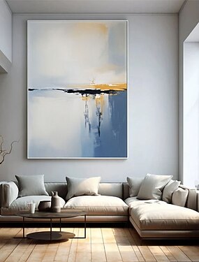 Tableau abstrait minimaliste représentant un ciel gris et des nuages, peinture acrylique moderne sur toile, grand format, idéal pour une chambre ou un salon.