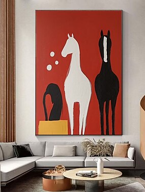 Peinture à l'huile texturée, peinture à l'huile faite main, art mural abstrait de chevaux noirs et blancs, décoration intérieure de luxe pour le salon