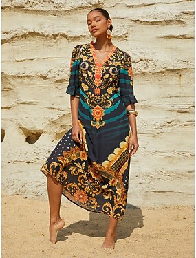caftan fluide en mousseline à manches chauve-souris, style village de rêve