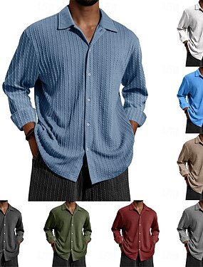 Homme Chemise Décontractée Noir Blanche Rouge Bordeaux bleu marine Bleu Ciel manche longue Couleur Unie / Unie Revers Tenue quotidienne Basique Vêtement Tenue Traditionnel / Classique