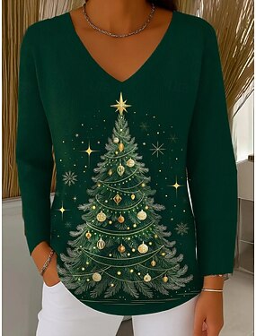 Femmes Pull Mode Streetwear Occasionnel Graphique Arbre de Noël Col en V Oversize Tricoté manche longue Hauts Réguliers Tricoter Extérieur Quotidien Vert Printemps Automne