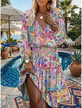 mini robe à volants et col en V à imprimé léopard et à fleurs pour femme, tenue quotidienne, vacances, manches longues, été, printemps