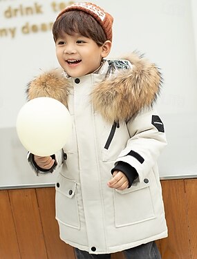Doudoune Veste à capuche Vêtements d'extérieur Enfants Garçons Graphique manche longue Garder au chaud Manteau Occasionnel Quotidien Basique Bleu Blanche bleu marine Automne Hiver 4 ans et +