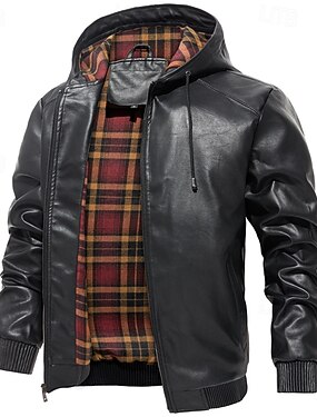 Homme Veste en Similicuir Blouson de Moto Vacances Quotidien Coupe-vent Chaud Avec Poches Automne & Hiver Uni Mode Classique À capuche Régulier Noir Vin Marron Veste