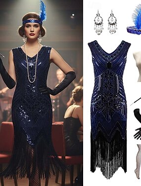 Set Années Folles Années 1920 Longueur cheville Robe Robes de Soirée Costume élégant avec accessoires Manches courtes Gatsby le Magnifique Paillettes Col carré Déguisement Femmes Carnaval Soirée