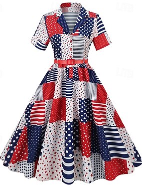 250e anniversaire des États-Unis Années 1950 Rétro Vintage Midi Robe Robe trapèze Robe Évasée Manches courtes Ligne A Déguisement Femmes 4 Juillet Jour de l'indépendance Adulte Robe Printemps & Été