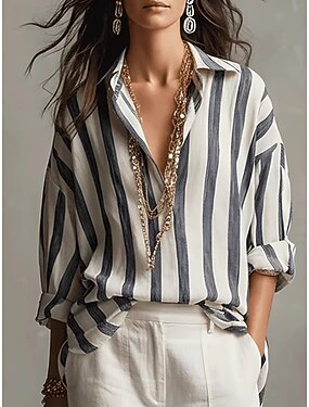 Femmes Chemise Chemisier Boutons Rayé Élégant Classique Moderne manche longue Col de chemise Hauts Réguliers Quotidien Fête Sortir Noir Rouge Marron Été Printemps