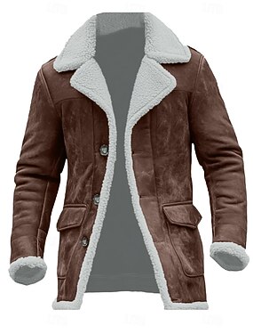 Homme Veste en faux suède Manteau en peau lainée Veste en Polaire Coupe-vent Décontracté Quotidien Coupe-Vent Avec Poches Col en polaire Hiver Couleur Unie ancien Mode Revers Régulier Marron Veste
