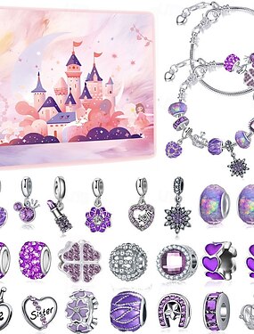 Calendrier de l'Avent de Noël, ensemble de bracelets à compte à rebours de Noël de 24 jours à faire soi-même, kit de breloques en perles violettes, cadeau de fabrication de bijoux pour filles, boîte