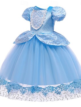 Robe de princesse mignonne en coton, coupe maxi, idéale pour les fêtes et les anniversaires, pour les petites filles de 4 à 12 ans (4-12 ans), avec sequins et manches courtes. Couleur bleue.