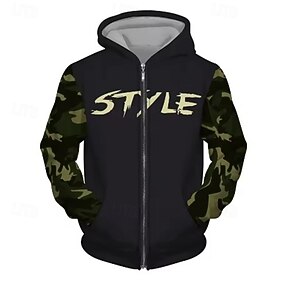Homme Sweat à capuche Sweat à capuche zippé intégral Noir Marron Kaki À capuche Lettre Camouflage Patchwork Avec Poches Sport & Loisir Quotidien Fête Polyester Streetwear Basique Occasionnel