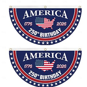 Lot de 2 drapeaux commémoratifs du 250e anniversaire des États-Unis, 45 x 90 cm (1776-2026), guirlande de fanions, décorations patriotiques à suspendre pour l'extérieur, porte d'entrée, porche, fond