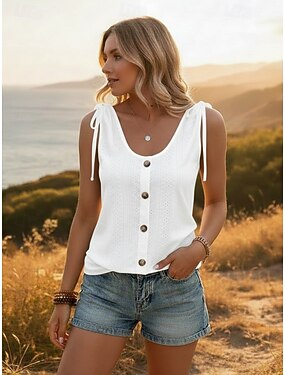 Femmes T-shirt Débardeur T-shirt sans manches Couleur Unie Mode Sexy Occasionnel Sans manches Col en V Hauts Réguliers Quotidien Sortir Week-end Noir Vert foncé Été Printemps