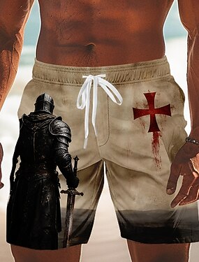 Homme Chevaliers Templiers Croisés Croix Maillots de bain Maillots de bain shorts de bain Shorts de Surf Taille Moyenne Rétro Vintage Extérieur Vacances Tenue Quotidienne Poches Latérales doublure en