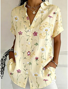 Femmes Chemise Boutons Imprimé Fleuri Graphique ancien Élégant Moderne Manche Courte Col de chemise Hauts Réguliers Quotidien Bleu Jaune Rose Claire Violet Vert Été Printemps