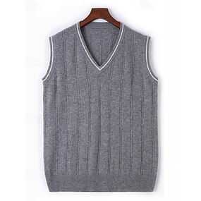 Homme Pull Gilet Robe pull Pull Gilet Pull Tricoté Côtelé Tricoter Hauts Réguliers Tricoté Bloc de Couleur Col en V Mode Streetwear Affaires Vacances Vêtement Tenue Sans manches Automne Hiver Chameau
