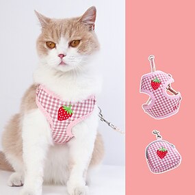 Chien Chat Harnais Laisses Réfléchissant Ajustable Portable Extérieur Marche Plaid