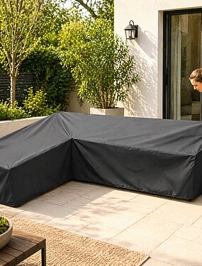 Housse de protection imperméable et anti-poussière pour mobilier de jardin en forme de L, idéale pour protéger votre canapé et votre salon de jardin en hiver (215 x 215 x 87 cm, noir).