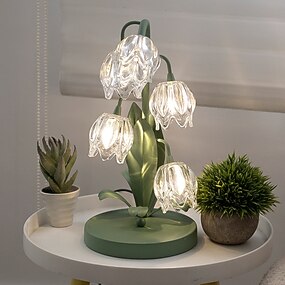 Lampe de table tulipe verte vintage à fleurs, lampe de chevet à LED G4, élégante lampe de chevet florale pour chambre à coucher, salon, bureau, lecture