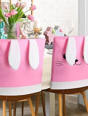 Housses de chaises à oreilles de lapin de Pâques, nappe et ensemble de chaises, housse de meubles décorative et anti-poussière pour salle à manger et maison