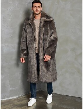Homme Manteau d'Hiver Manteau Fourrure Manteau Vacances Occasionnel Hiver Polyester Doux Extérieur Vêtements d'extérieur Vêtement Tenue Échauffement Confort Couleur Unie Avec Poches Revers
