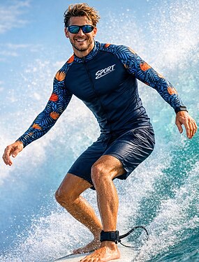 Homme Moyen Maillot Anti UV Tee-shirt de Baignade Alphabet Géométrique fermeture éclair sur le devant UPF50+ Protection UV Séchage Rapide manche longue Maillot de Bain Tee-shirts anti-UV, tops